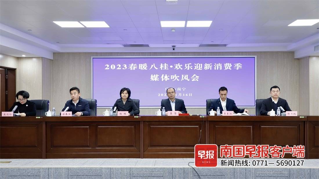 1月16日,自治区商务厅在南宁市举行了2023春暖八桂·欢乐迎新消费季活动媒体吹风会。