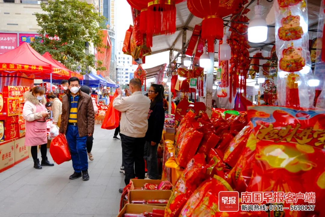 ▲南宁大唐天城购物中心广场外的年货摊位。南国早报记者 尹世斌 摄
