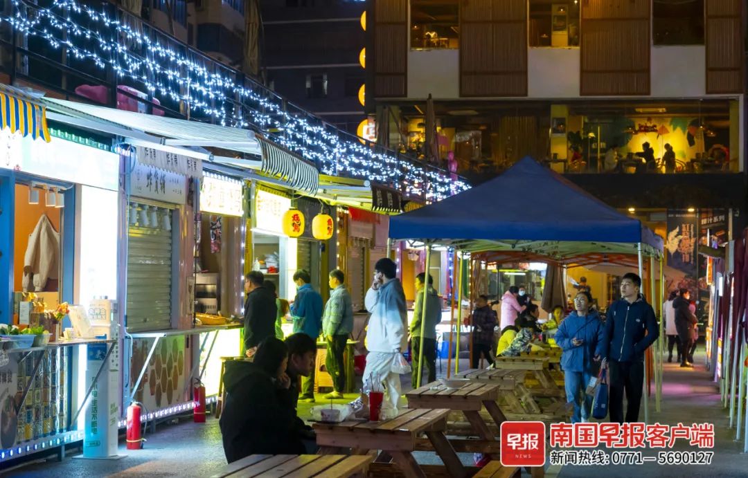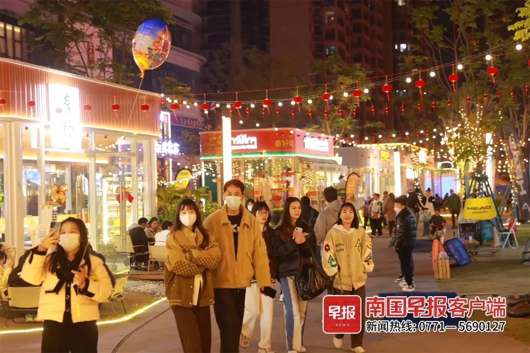▲盛天汇·大又里B区微醺广场灯火辉煌,游人如织。南宁市西乡塘区经济贸易和信息化局供图