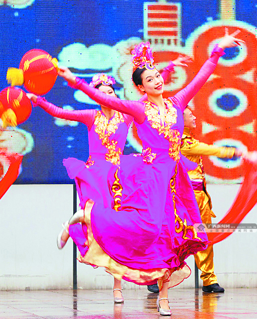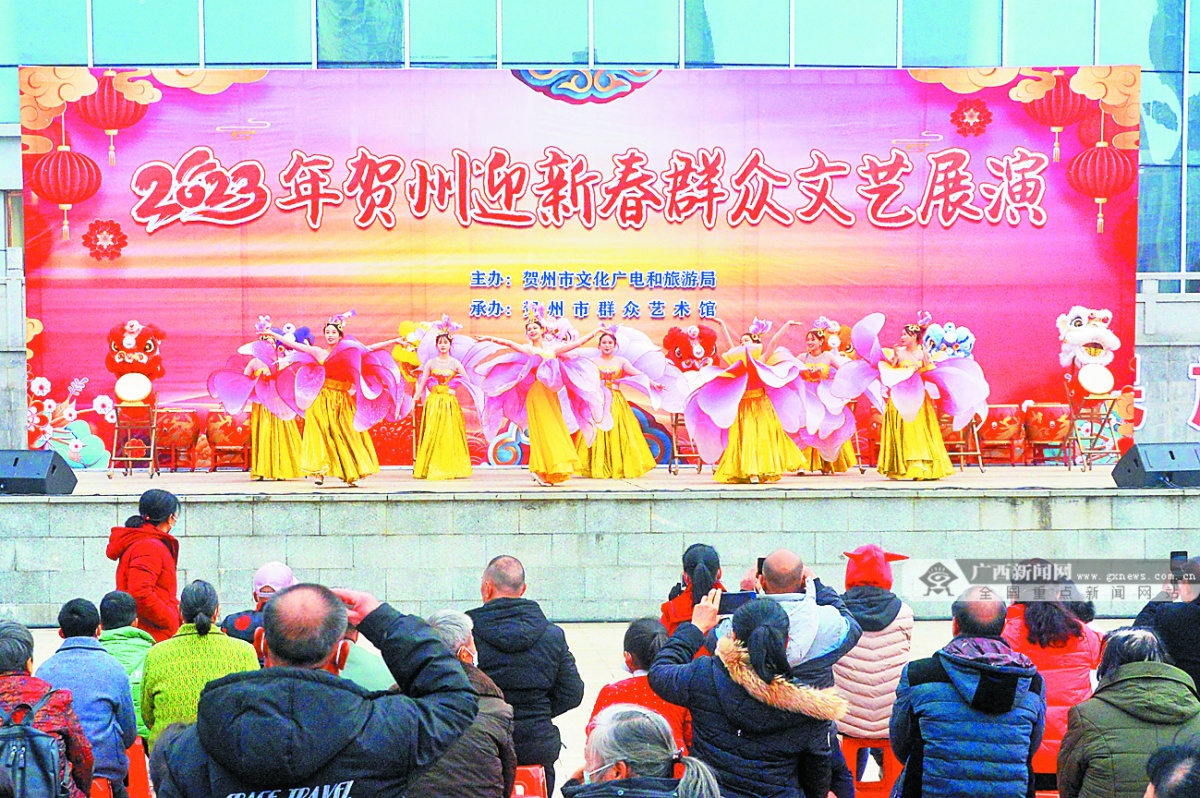 农历大年初一,贺州市举行欢乐迎新春群众文艺演出活动,吸引众多市民和游客驻足观赏。廖祖平 摄