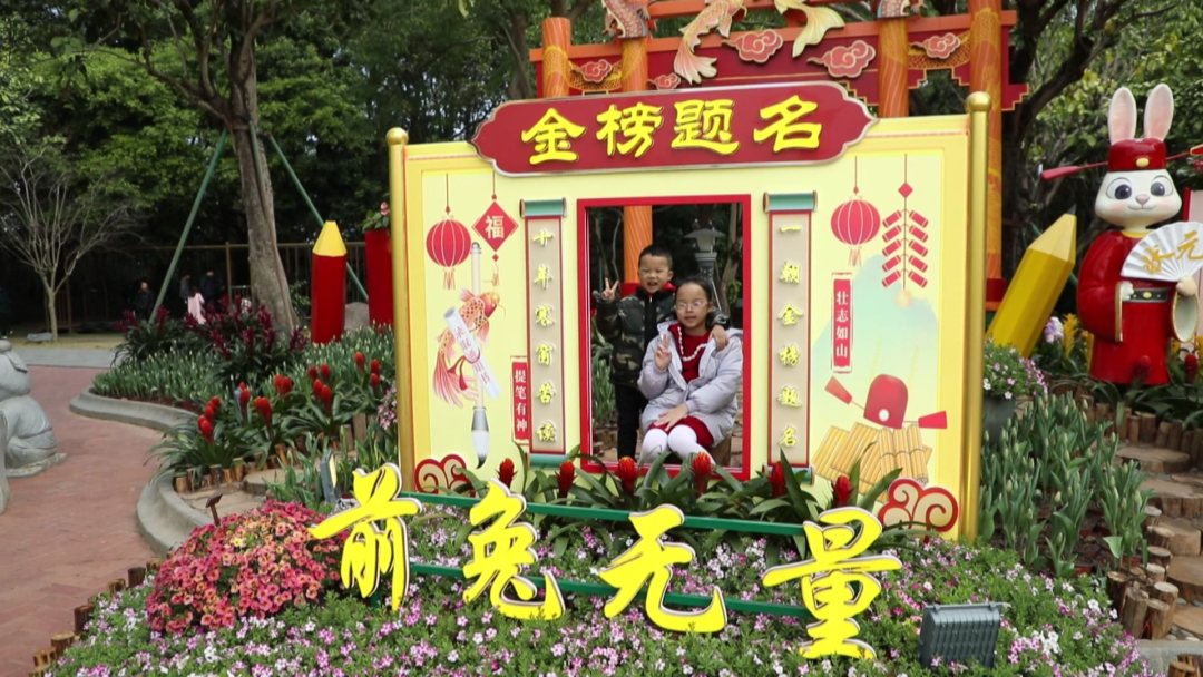 在东盟友谊园里,学子兔园林小品迎来了不少小朋友和大朋友,这几位学生今年就要迎战高考了,今天相约青秀山,相互祝福学业“兔”飞猛进。