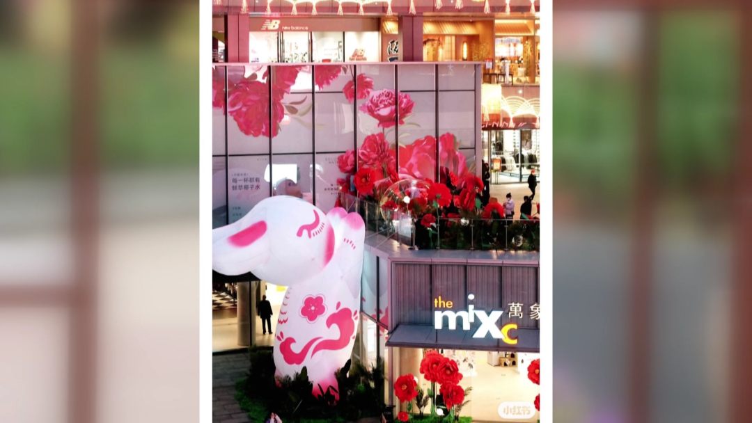 您瞧,南宁三街两巷的兔子红粉相间,还剪了一撮小刘海,可把大家给萌坏了;在中山路的万象汇,更有既立体又动感的兔子现身,这趴在楼宇之间的样子,真的是灵动俏皮,人见人爱。