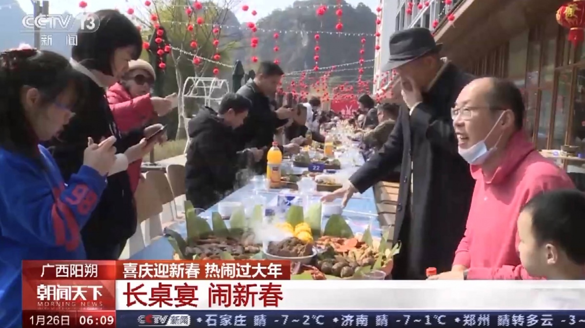 长桌宴闹新春,阳朔独特壮乡风情迎四方客