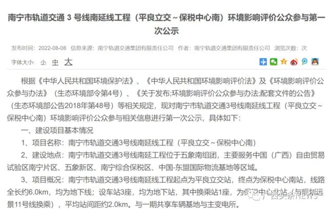今年1月17日,南宁轨道交通集团官网发布《南宁市轨道交通1号线北延工程(南宁东站-金桥客运站)环境影响评价公众参与第一次公示》《南宁市轨道交通2号线三期工程环境影响评价公众参与第一次公示》以及《南宁市轨道交通5号线二期工程(南延、北延)环境影响评价公众参与第一次公示》。