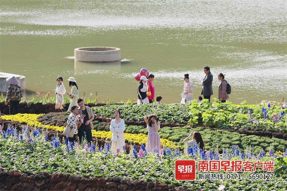 ▲2月11日下午,南宁市天气晴朗,市民在赏花游玩。南国早报客户端记者 邹财麟 摄