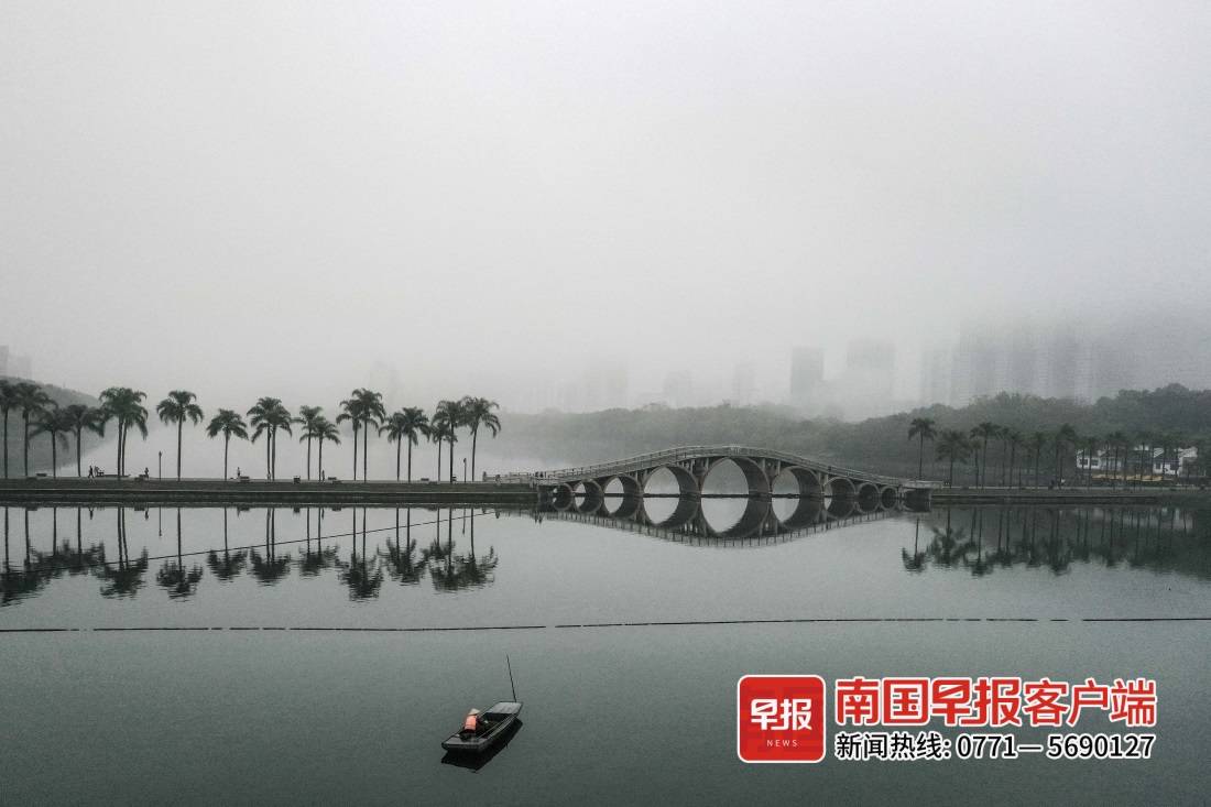 ▲雾中的南湖,宛若一幅水墨画。南国早报客户端记者 游拥军 摄
