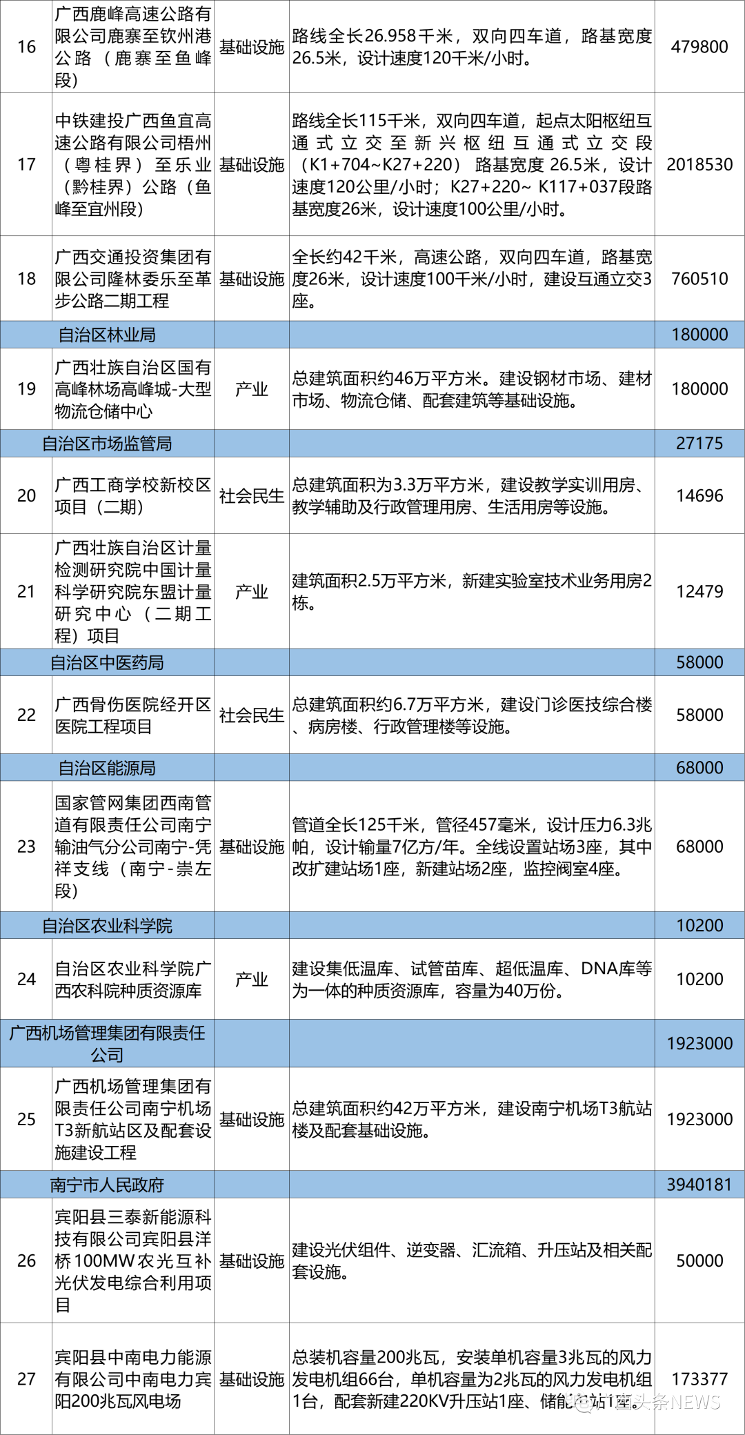 广西2023年重大项目涉及高速公路、铁路、航空、学校、医院、新能源、旅游业、物流仓储等。