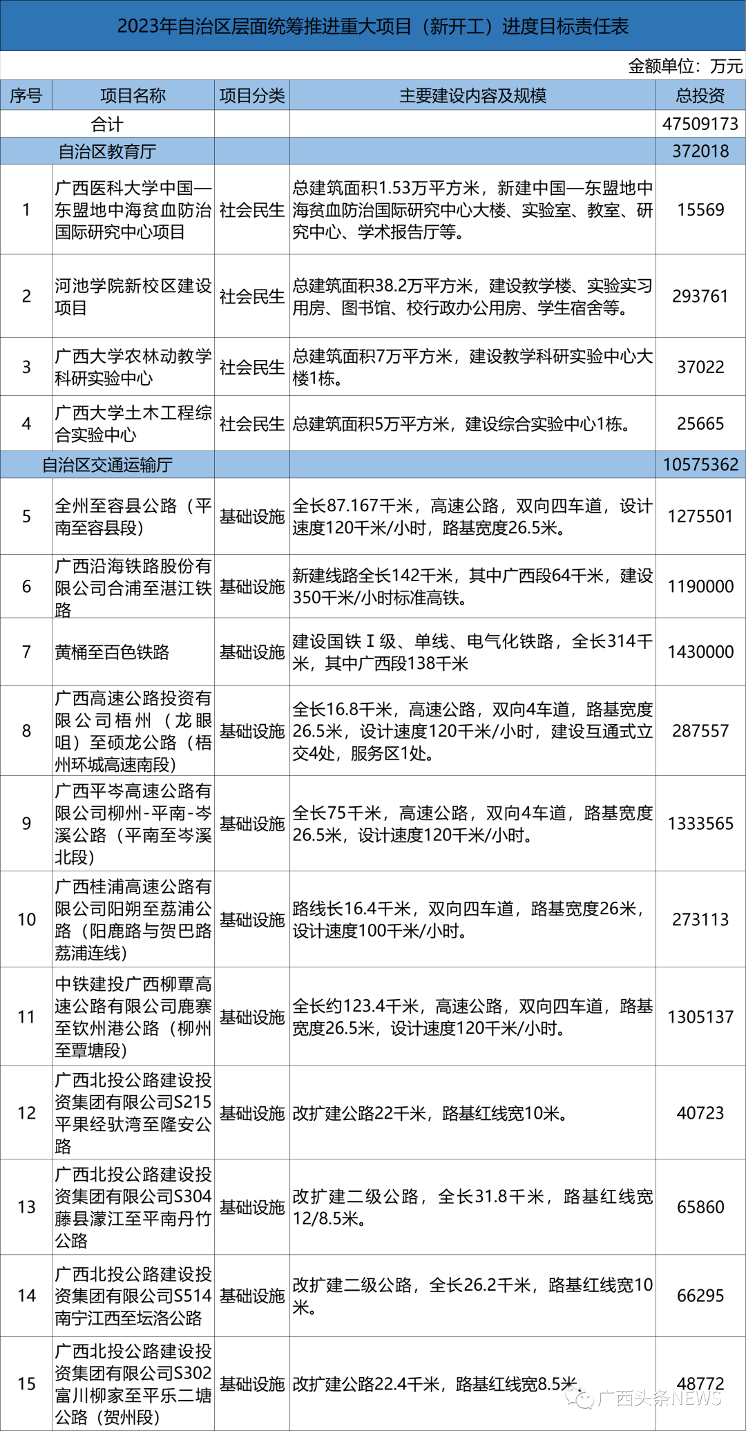 日前,广西重大项目建设推进领导小组办公室发布2023年自治区层面统筹推进重大项目清单,涉及高速公路、铁路、航空、学校、医院等,有哪些是你期待的?
