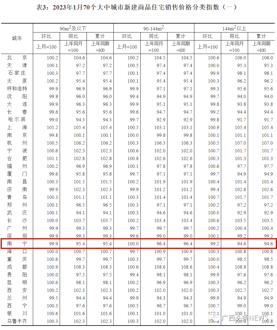 16日,国家统计局官网公布了2023年1月份70个大中城市商品住宅销售价格变动情况,70个大中城市中商品住宅销售价格环比上涨城市个数增加,其中,广西这两个市新建商品住宅销售价格涨了!