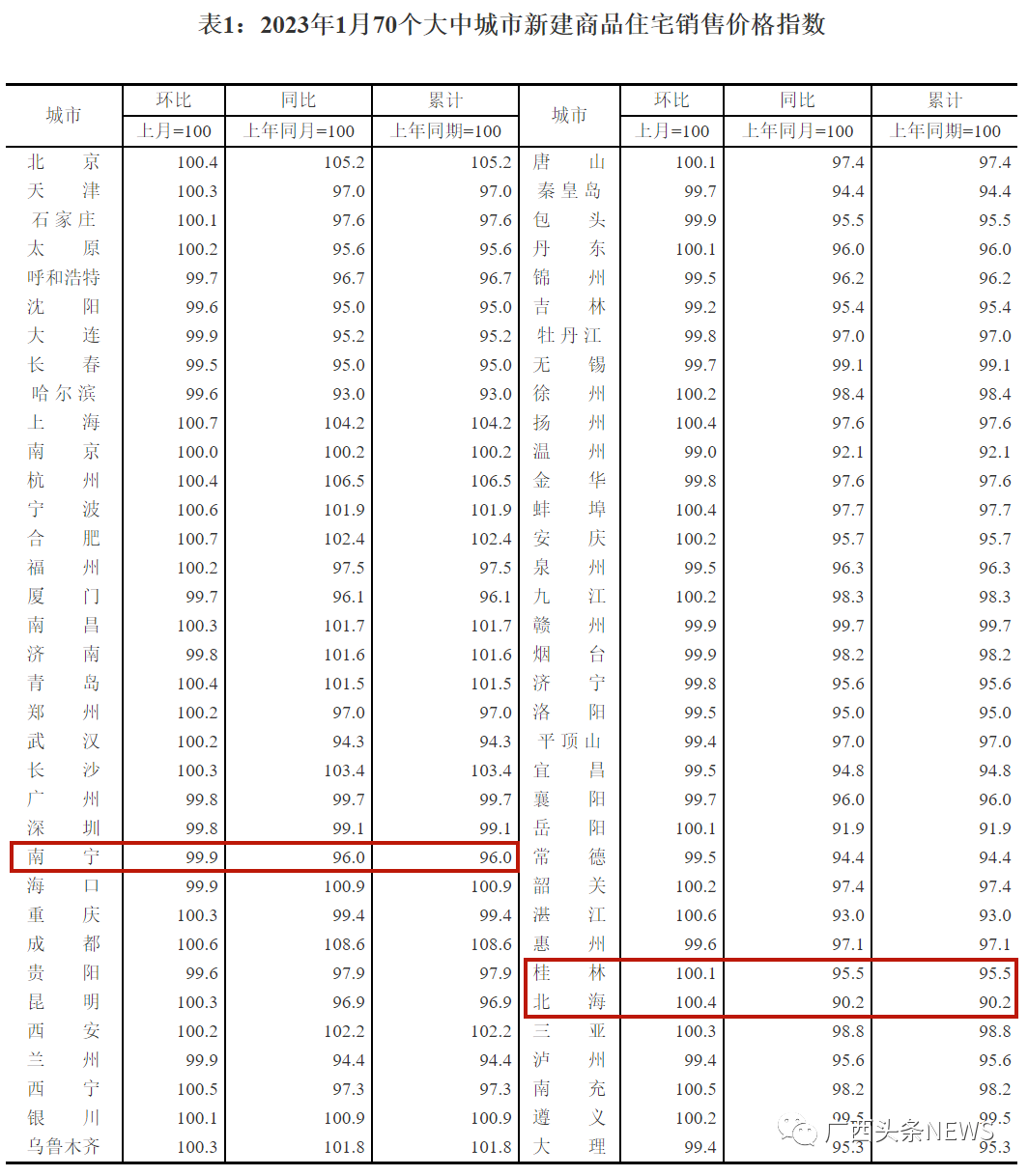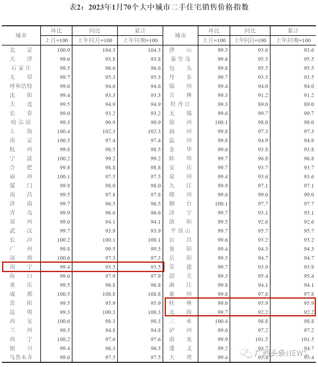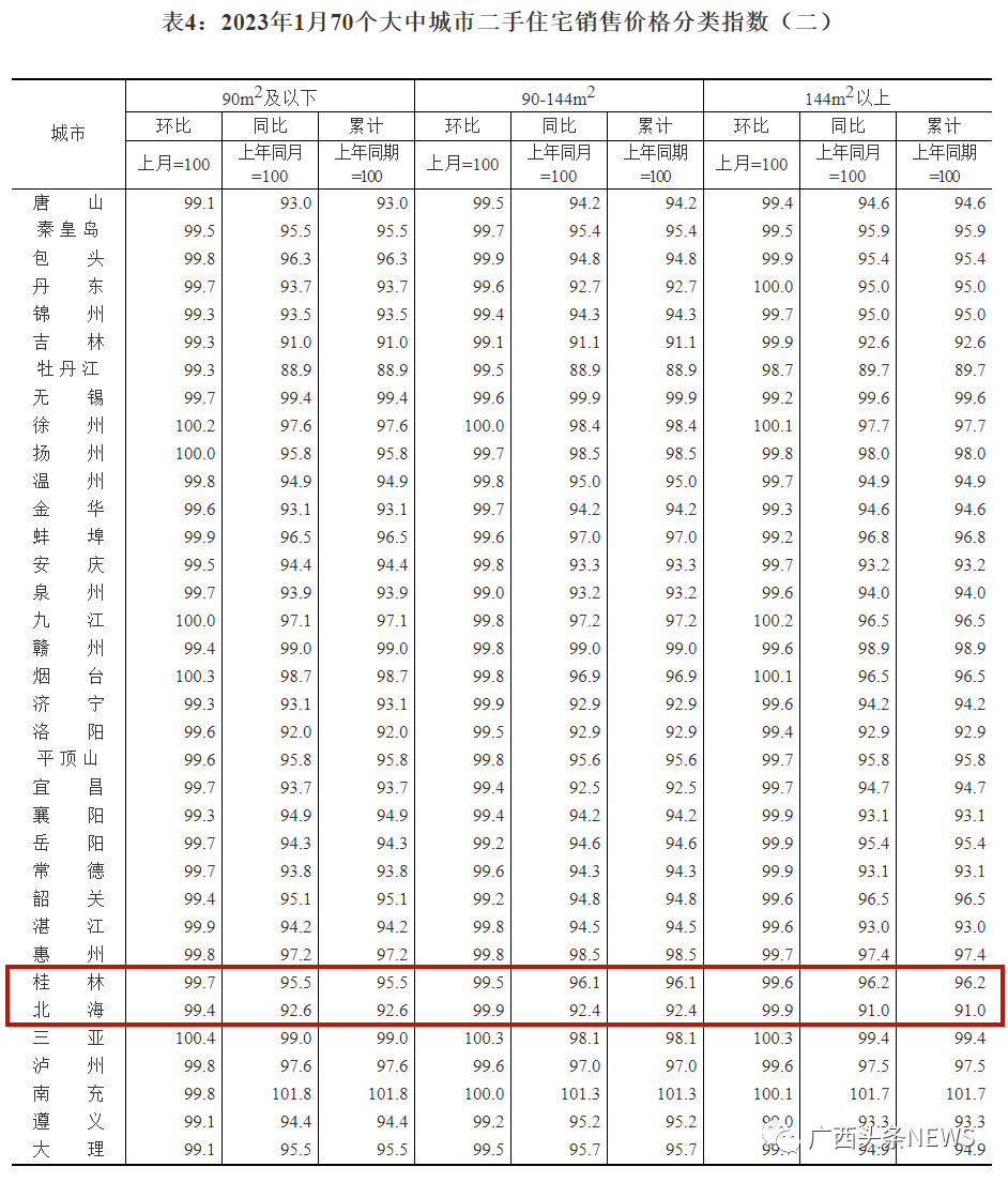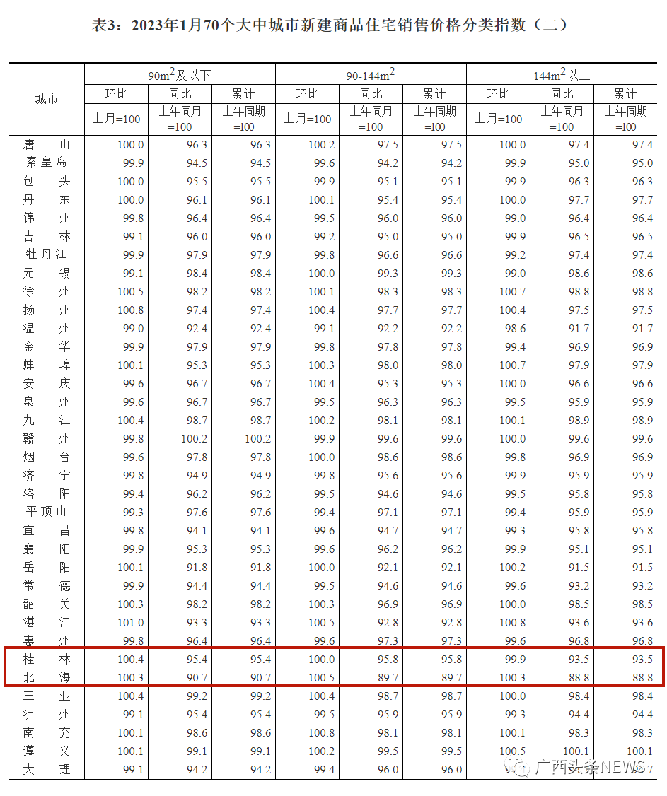 其中,桂林市和北海市新建商品住宅销售价格相比2022年12月均有所上涨。