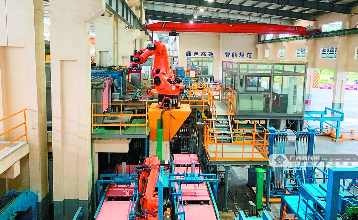 南国铜业电解车间的机械臂正忙碌作业。记者 管林华 摄