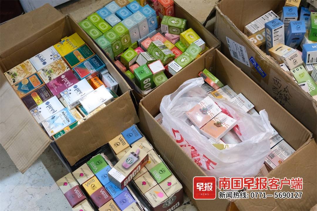 “奶茶杯”“可乐罐”“星球杯”……官方明令禁止的调味电子烟,换了一个“马甲”又出现在市场上。2月17日晚,南宁市烟草专卖局、南宁市公安局兴宁分局、兴宁区市场监管局等部门60余名执法人员兵分4组集中开展电子烟市场清理整治专项行动,共查获涉嫌销售非法生产的电子烟案件5起,现场查获非国标水果味电子烟烟弹及“奶茶杯”“可乐罐”等电子烟288个,电子烟杆套装38套,雾化器33套,涉及50多个品种规格。