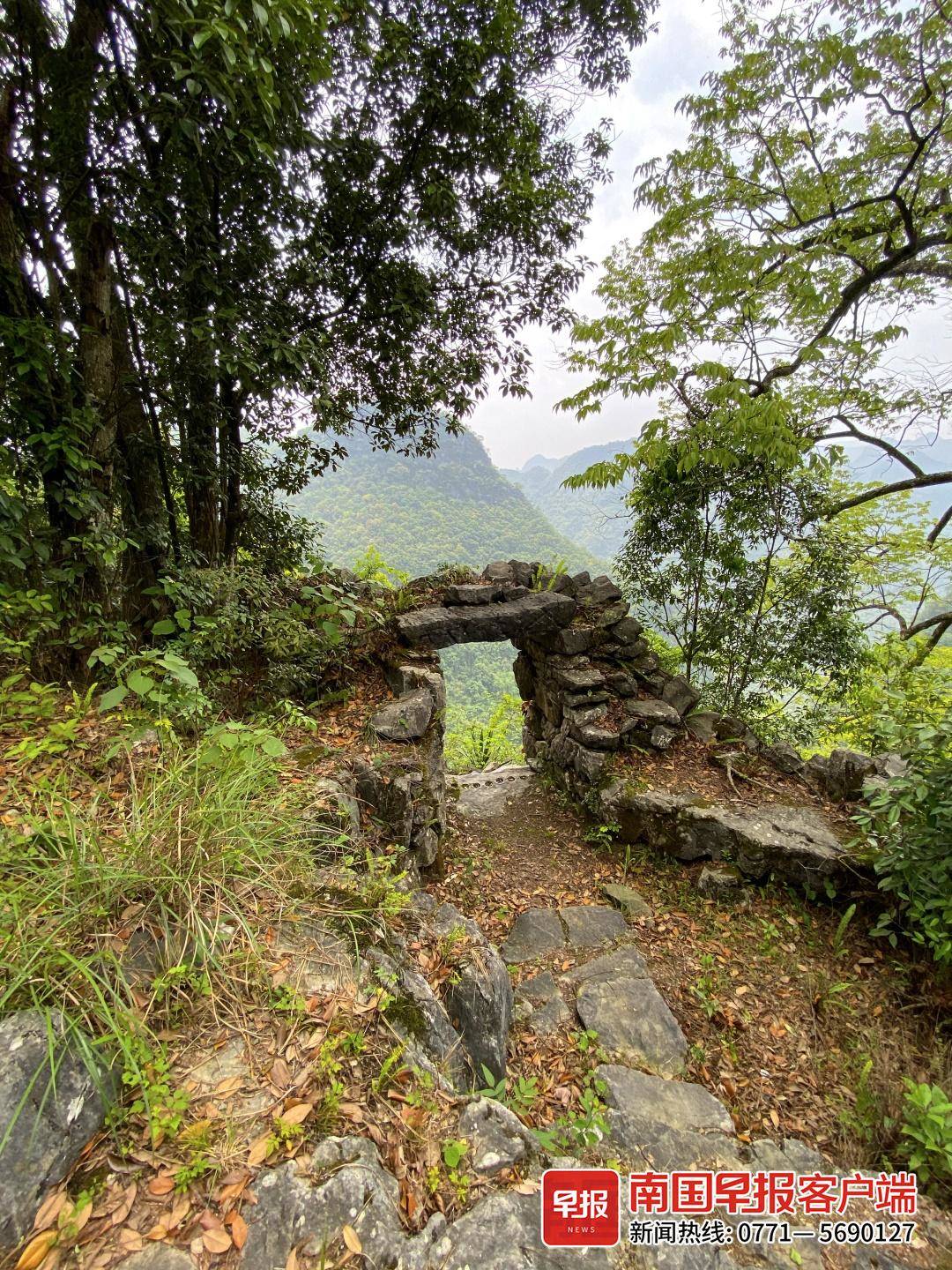 在弄温屯的南北坳口,各有两处石门把守,在石门旁的峭壁上,还有大石块垒起的石墙。通过这两道门,有崎岖而陡峭的两条羊肠小道,让这个悬崖上的山屯与外面的世界保持联通。