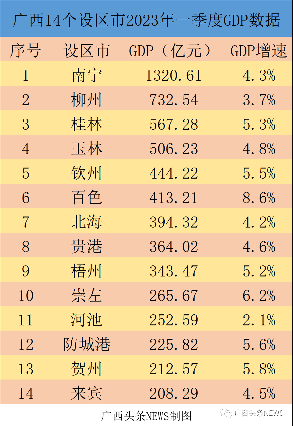 广西14市一季度GDP出炉!这地成增速“黑马”
