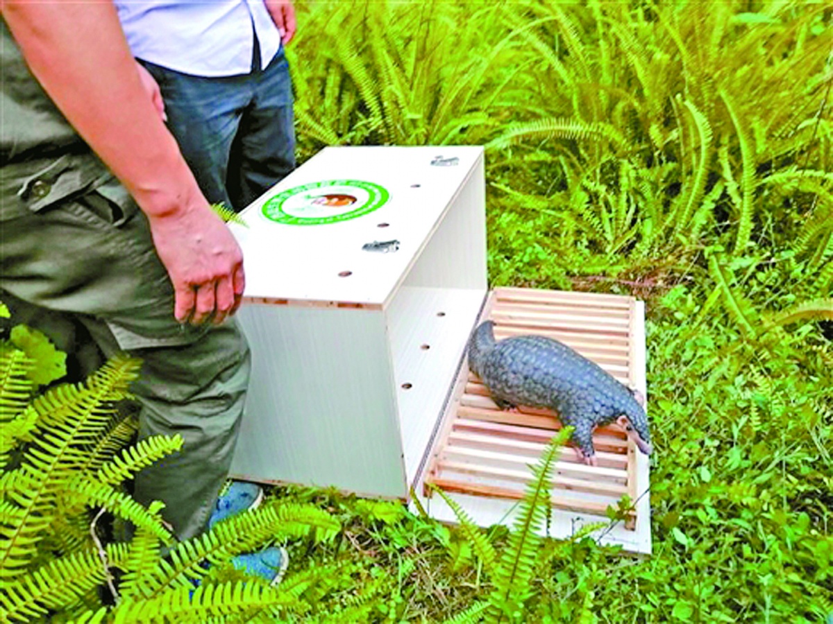 一只野生中华穿山甲被放归山林。记者 张文卉 摄 (资料图片)