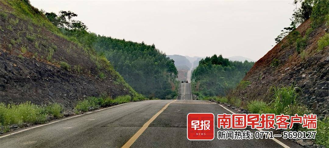 据了解,这条道路连接着来宾市三江口港产城新区高安至奇山码头,是通往园区的主干线,道路设计总长15千米,宽度为8米,时速为20千米/小时,全线主体工程已完工。不过,雨季坡陡路滑,边坡尚不够稳定,前往游玩需注意安全。