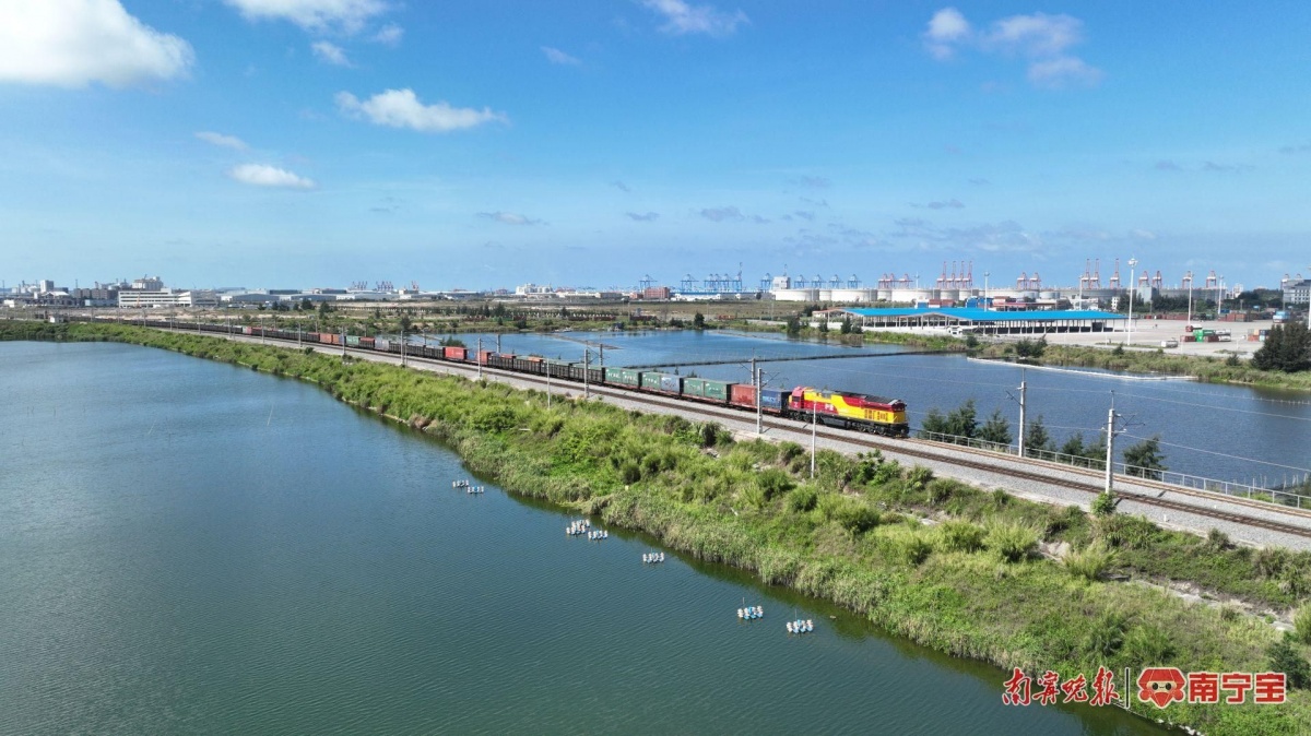 6月1日,载着巴西润滑油、海南椰子汁和矿泉水等货物的X9586次铁海联运班列从广西钦州港东站出发,开往四川成都城厢站。今年前5个月,西部陆海新通道铁海联运班列运输货物35万标箱,同比增幅12%。