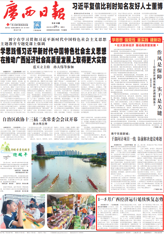 广西新闻网-广西日报讯(记者 赵超 通讯员 付晓霞)6月20日,自治区统计局发布经济运行数据:1—5月,全区工业生产保持增长,服务业总体平稳,消费市场持续恢复,民生保障支撑有力,经济运行延续恢复态势。