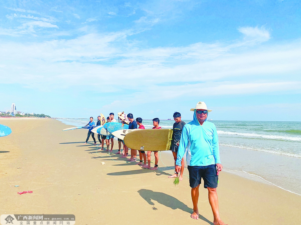 “临近比赛要适应场地,也要加强体能训练。我们最近根据浪涌情况,有时候一天训练3节课,上午、下午和晚上各一节。”当天下午,广西冲浪队主教练梁春率领队员们在进行训练。他说,代表广西参加此次比赛的有南宁队和北海队,共20名队员,大家对在“家门口”的比赛充满信心。