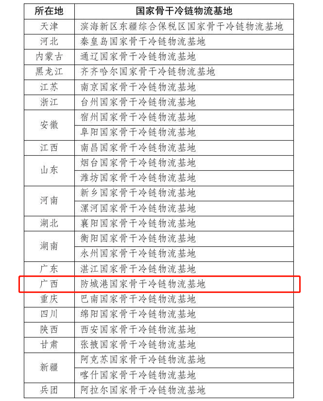 2023年国家骨干冷链物流基地建设名单公布,广西一基地入选