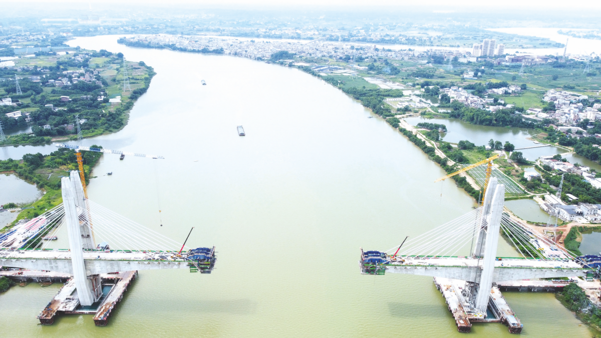据了解,六景郁江特大桥全长11.465千米,为设计时速350公里的双线无砟轨道高速铁路,主要包含主跨320米的钢混部分斜拉桥1座,是目前国内在建高速铁路最大跨度钢混部分斜拉桥。六景郁江特大桥是南玉铁路关键性控制工程,大桥的顺利建成将为南玉铁路整条线通车提供必要条件。