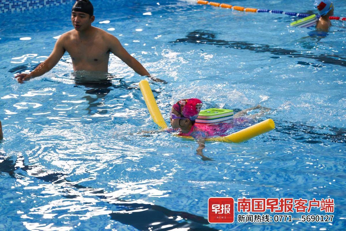 “1、2、3,抬头吐气,再吸一口气低头,非常棒……”当天,在约80公里外的港北区根竹镇中心小学,也有一批学生在学校新建的游泳池内接受培训,岸上的救生员时刻关注着泳池里的一举一动。