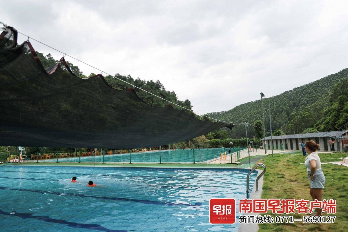 桂平市西山镇的绿河山水农庄游泳池,家长带着两名孩子在游泳。记者 游拥军 实习生 覃安桐 摄