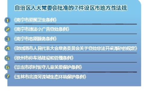 自治区人大常委会批准的7件设区市地方性法规