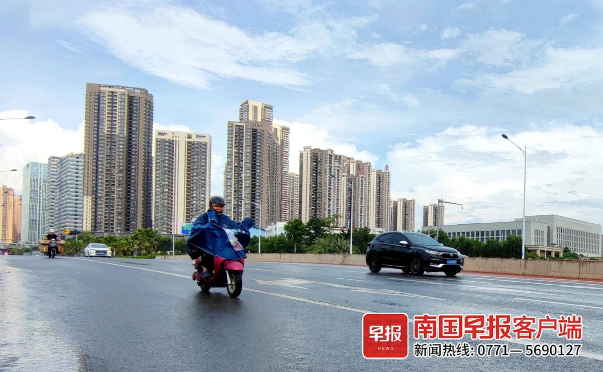 8月2日下午,南宁市阵雨,市民冒雨出行。 南国早报全媒体记者 何定坚 摄