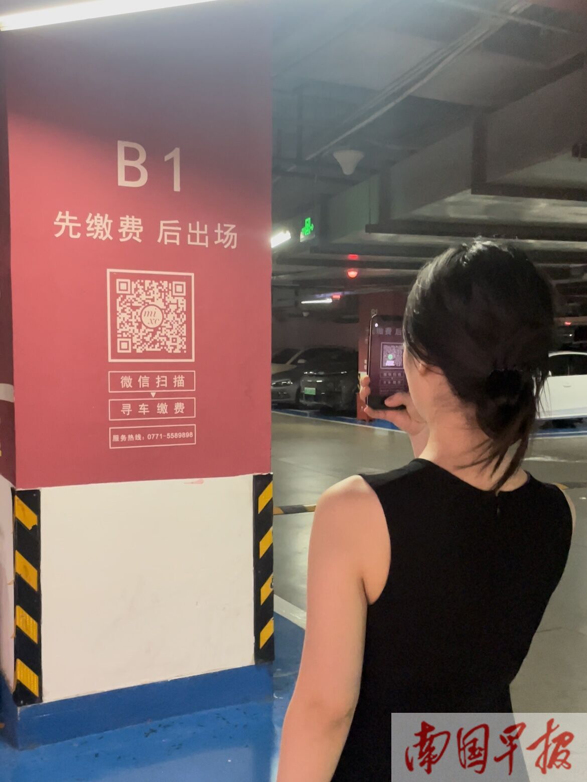 去年7月,黄女士在南宁市长堽路北京华联生活超市购物时,将车停在地下停车场,等她想开车出场时,在缴费环节却颇费了一番周折,“先扫墙面的二维码关注‘速停车’公众号,在系统中绑定车牌号后,才跳转到缴费页面”。