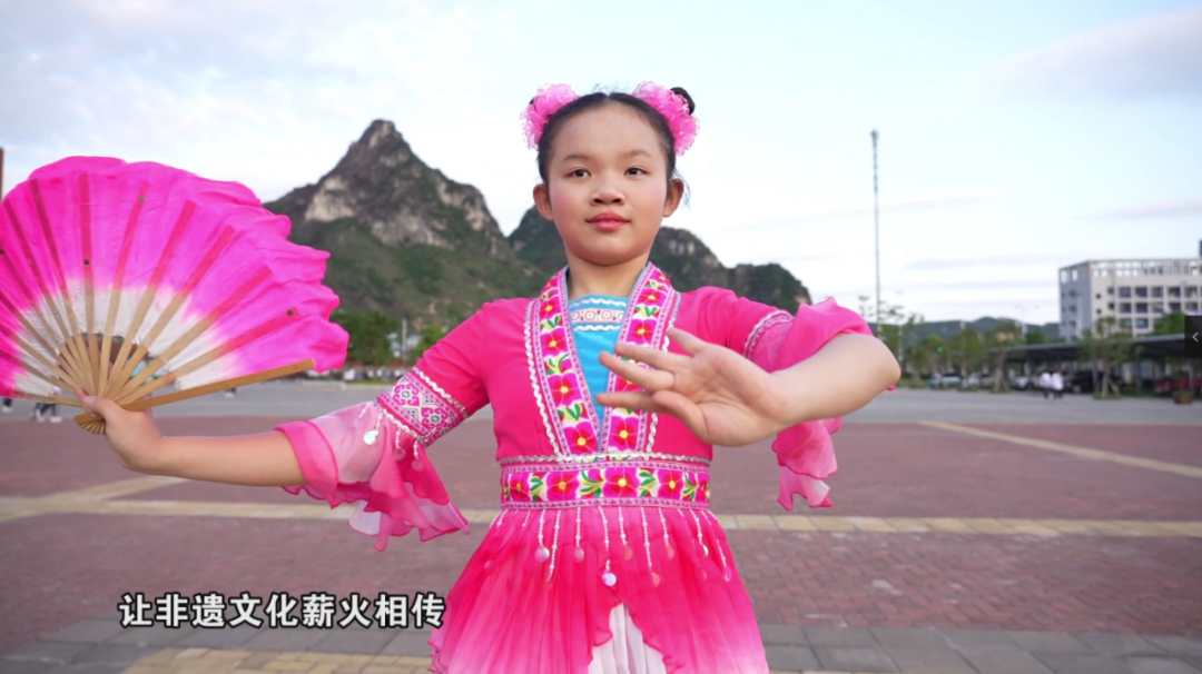 今年12岁的黄嘉善,在中国—东盟戏曲演唱会、全区农民文艺汇演、广西壮族嘉年华“三月三”非遗展演等众多舞台上,展现着非遗风采。2019年7月,她携《四门摘花》剧目代表广西参加第23届中国少儿戏曲小梅花荟萃比赛,勇夺“全国地方戏曲小梅花金奖”,让柳城的彩调从乡村走向全国,并实现国家级金奖零的突破!她决心把传承中华优秀传统文化为己任,将非遗彩调的艺术魅力唱响中国,传遍世界!