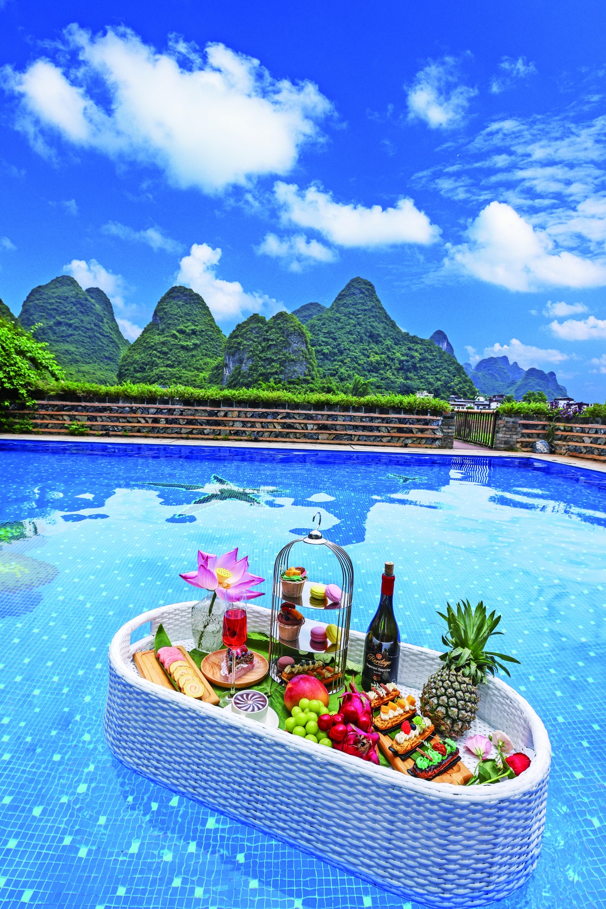 泳池是广西很多优质民宿的一大卖点。图为阳朔县一家民宿泳池。 受访者供图