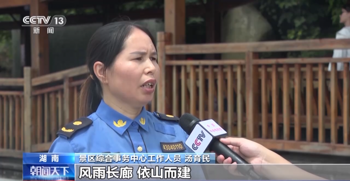 景区综合事务中心工作人员 汤育民:风雨长廊依山而建,原始地貌不会被破坏,又可以遮风挡雨。