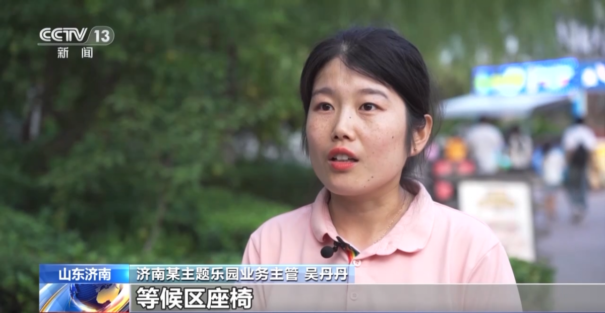 济南某主题乐园业务部主管 吴丹丹:我们整个园区遮阳棚大概有15000平方米,遮阳伞大概有500把,等候区座椅大概是5000个,还有风扇和空调,给游客提供一个更好的游玩环境。