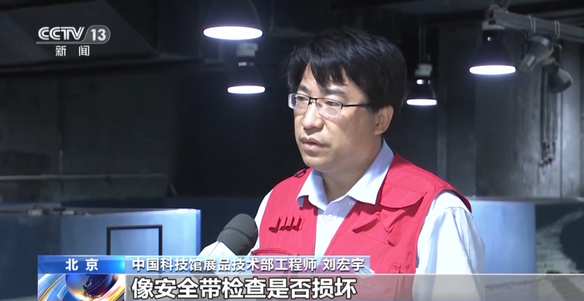 中国科技馆展品技术部工程师 刘宏宇:开机时会检查每一个传感器工作是否正常;系统运行时,它会实时监测传感器的信号,如果信号异常,系统会自动停机。