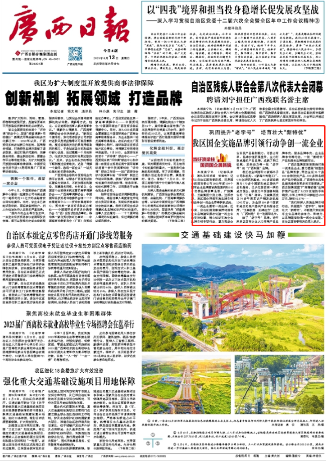 广西新闻网-广西日报南宁讯(记者 吴家跃 通讯员 邓明甫 张维佳)记者从自治区国资委获悉,近期国务院国资委公布2022年度100个国有企业品牌建设典型案例和100个优秀品牌故事名单,广旅集团、玉柴集团分别上榜。这标志着,我区国企持续实施品牌引领行动争创一流企业取得积极成效。