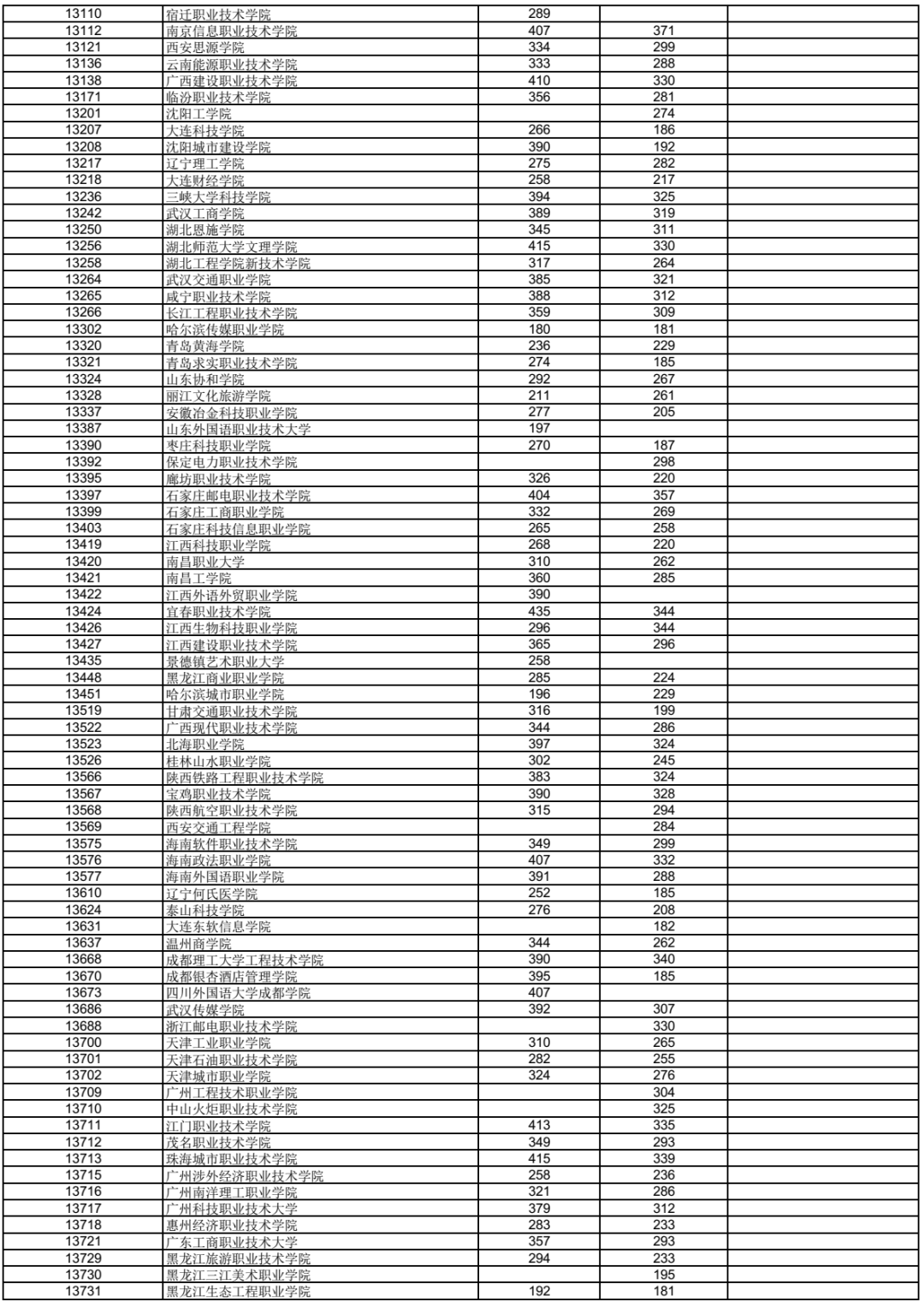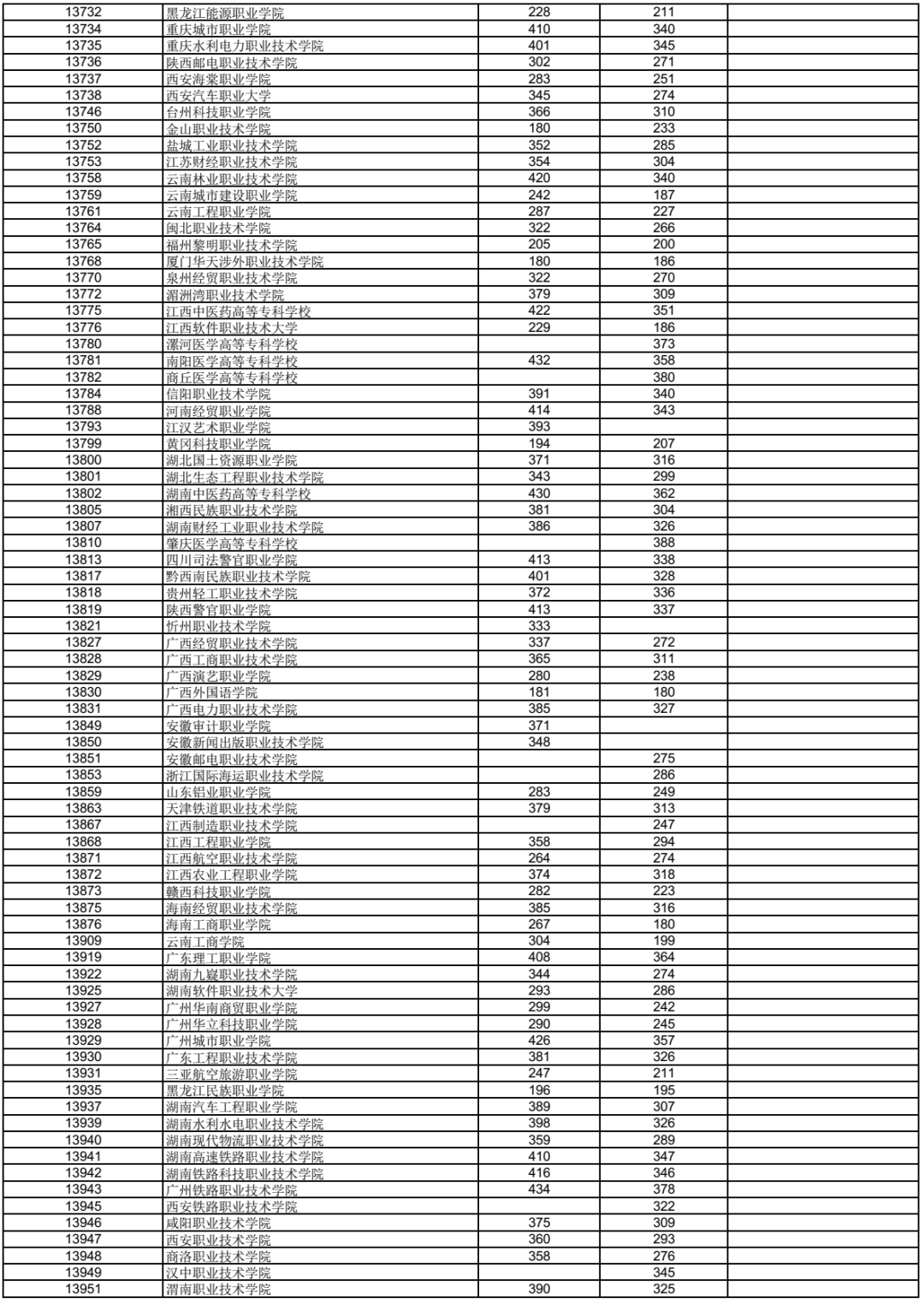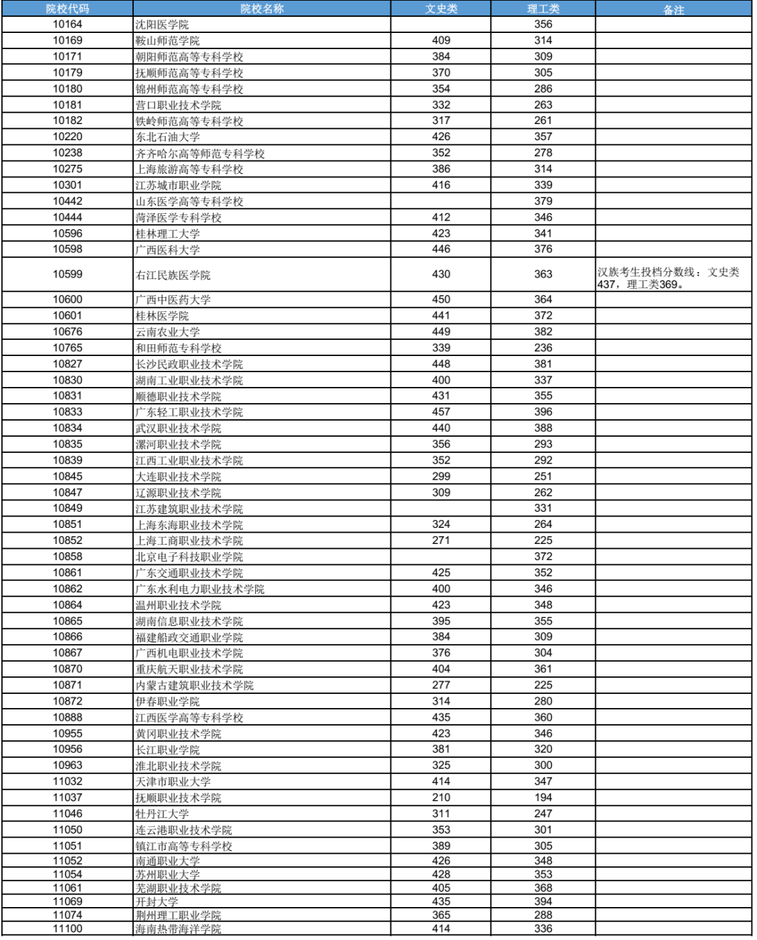 3.表中空白处表示无相应科类招生计划或无符合条件的出档考生。