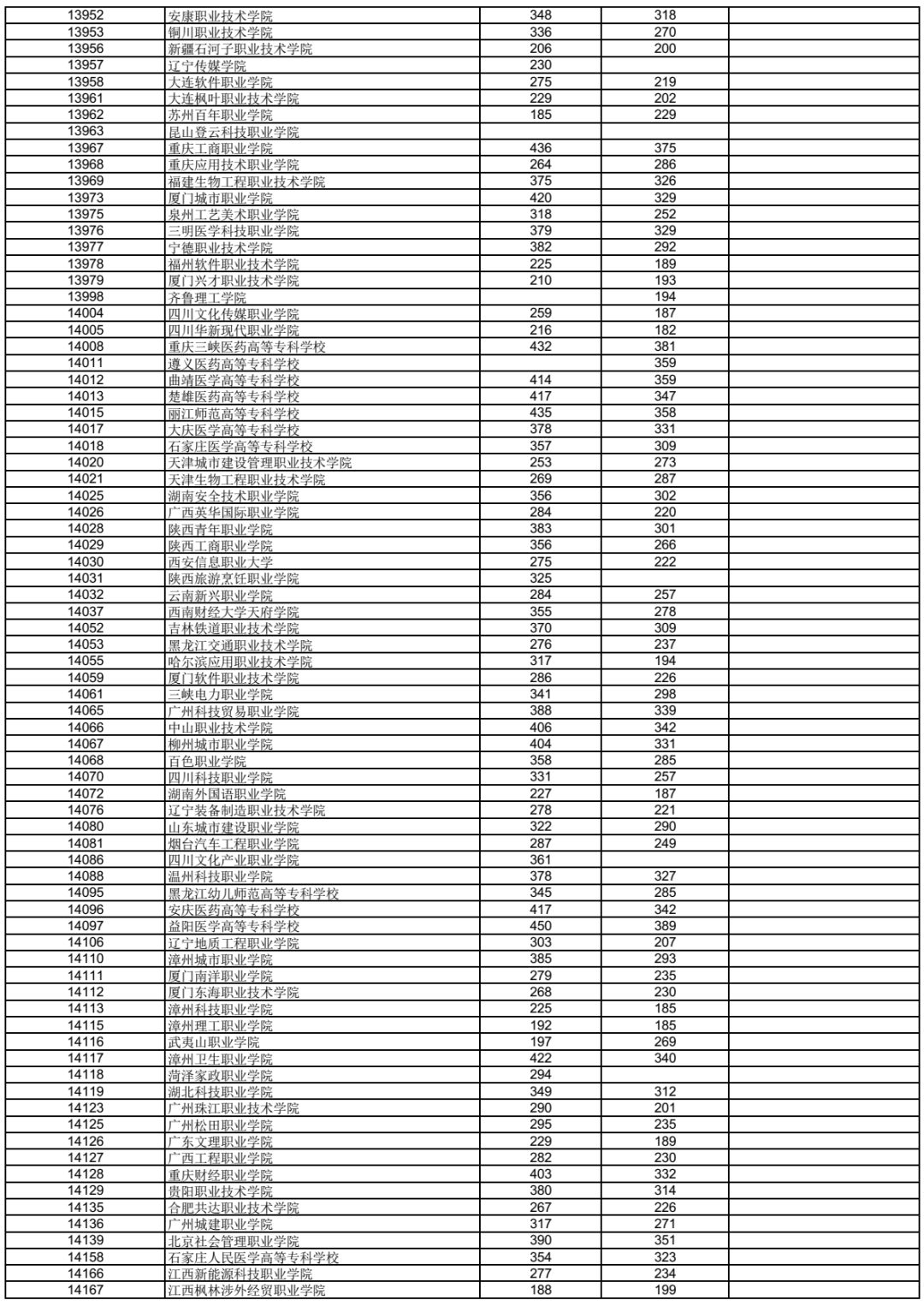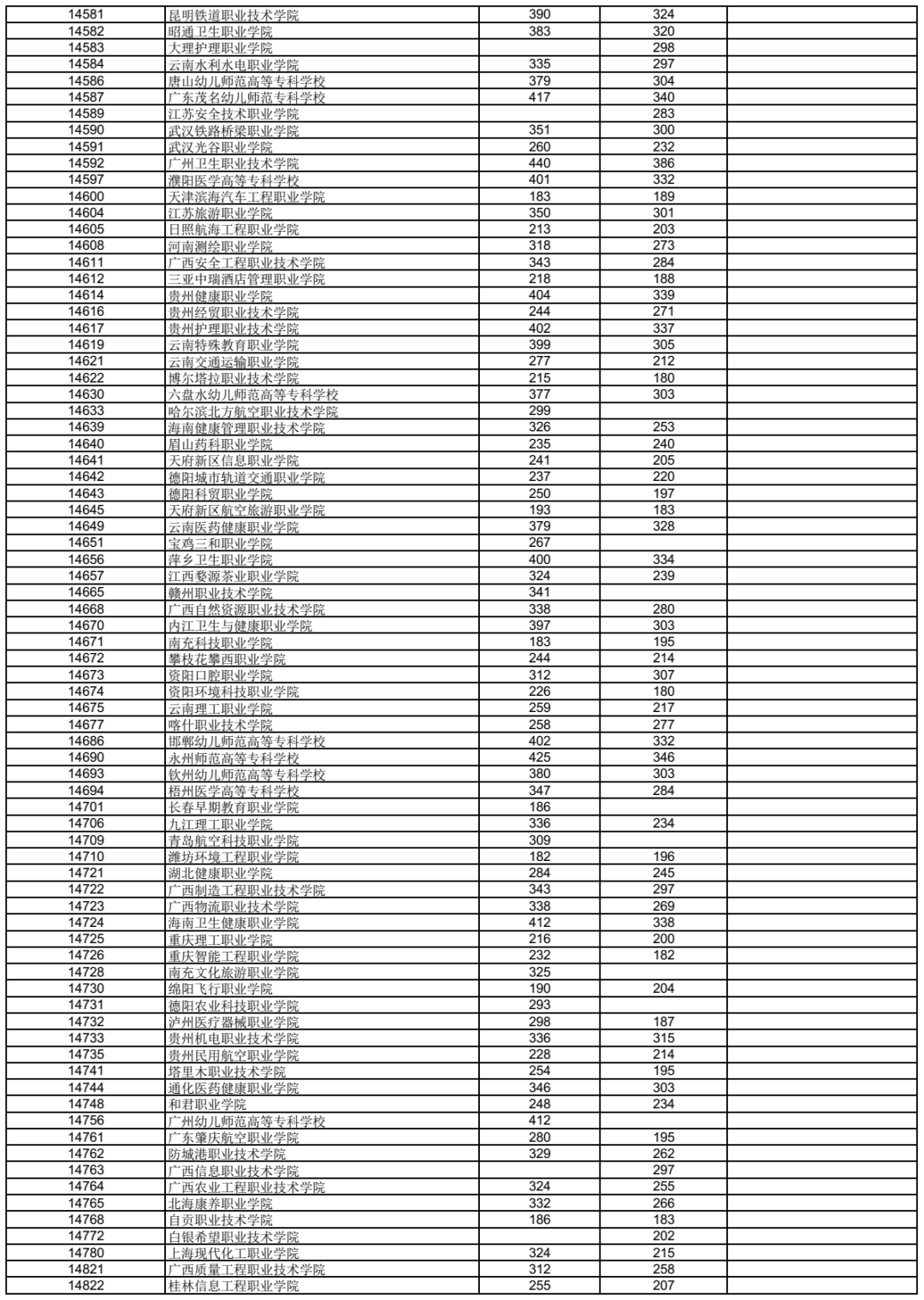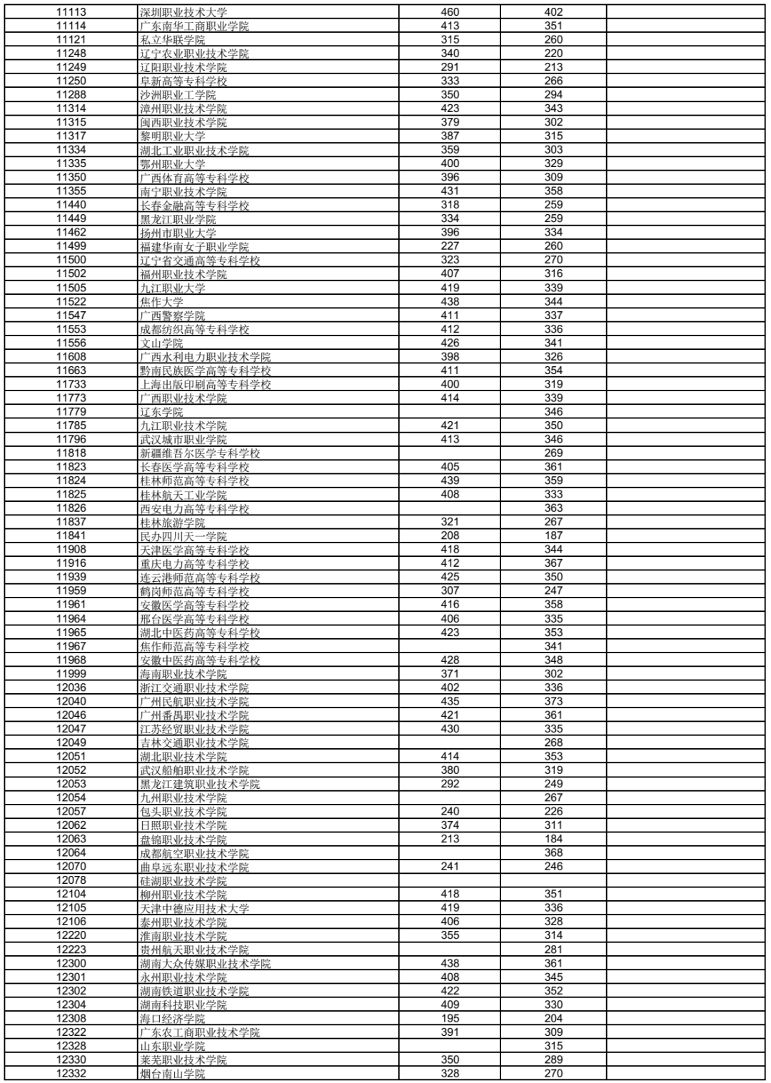 3.表中空白处表示无相应科类招生计划或无符合条件的出档考生。