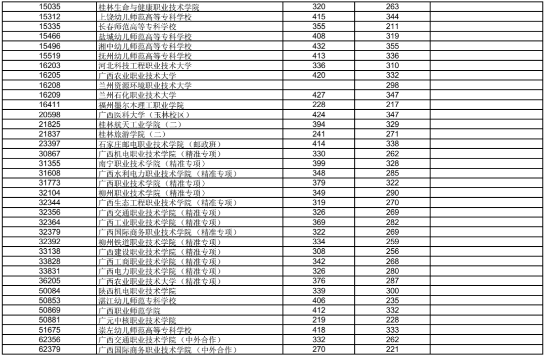 广西2023年高职高专普通批最低投档分数线公布