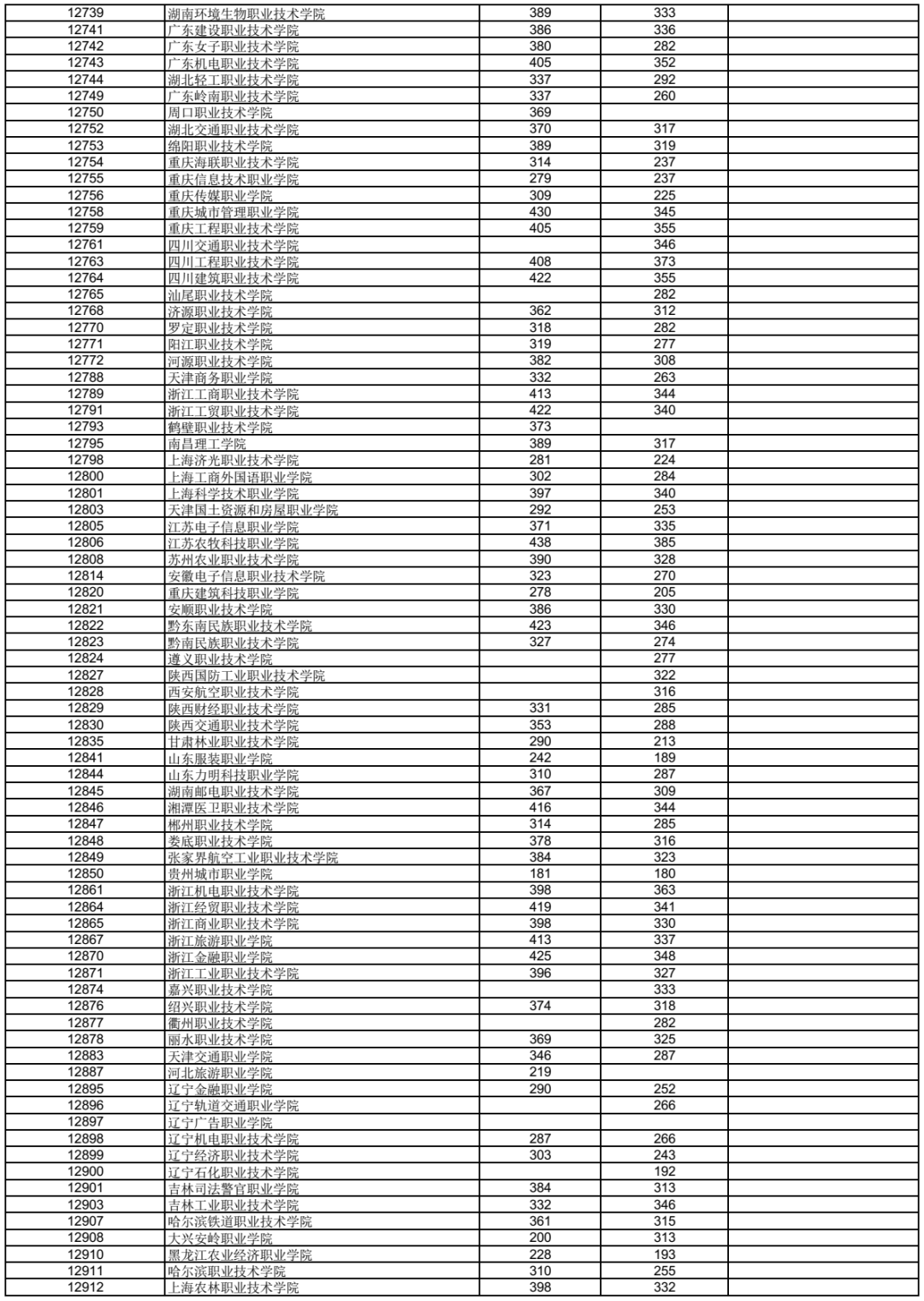 高职高专普通批最低投档分数线