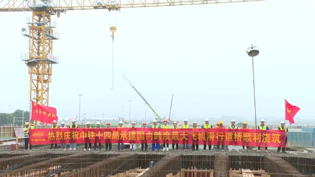 8月14日,由中铁十四局三公司承建的南宁吴圩机场改扩建工程B线飞机滑行道桥浇筑完成,该桥不仅是广西首座飞机滑行道桥,更是国内目前跨度最大的飞机滑行道桥。