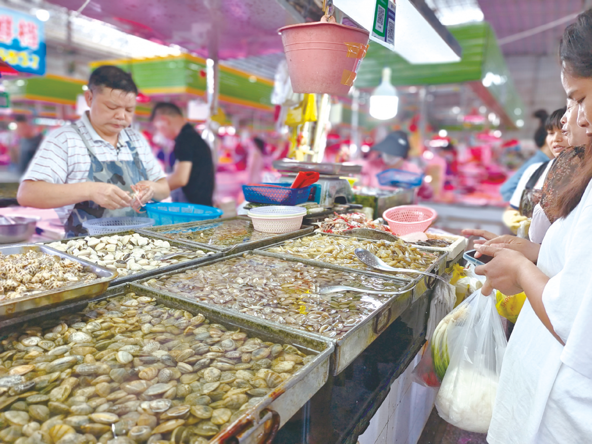 在仙葫农贸市场,海鲜种类更丰富,鱼虾贝蟹琳琅满目,不少市民在档口前仔细挑选。“最期待还是沙丁鱼和皮皮虾,开海后这些海鲜的价格应该能便宜一些。”市民蒙阿姨笑着说,家人喜欢吃海鲜,她隔三差五就会购买,所以对价格的变动比较清楚。“新鲜的沙丁鱼31元一斤,冰鲜的便宜一些,22元一斤。”海鲜档口经营户韦先生介绍,目前钦北防的新鲜鱼类还未供应充足,价格并没有太大变化。