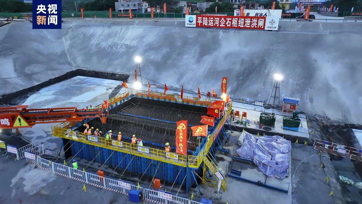 企石枢纽泄水闸首仓混凝土浇筑 平陆运河三大枢纽全面进入主体结构施工新阶段
