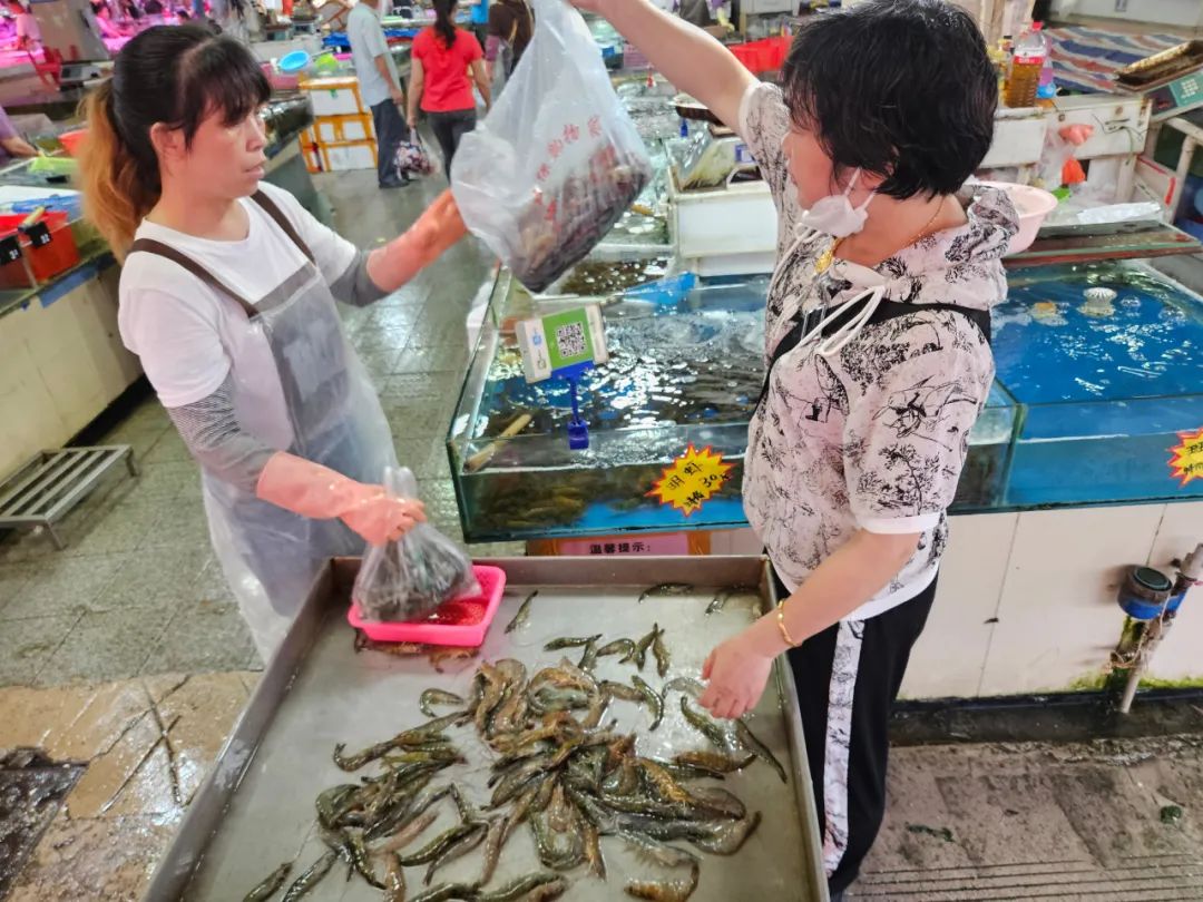 一位摊主向记者介绍,相比于开海前,休渔期间,南宁海鲜批发交易市场海鲜区销售的大多以养殖海鲜为主,价格较高。随着市场上海产品货量和品类明显增多后,价格普遍下降。以备受消费者喜爱的皮皮虾为例,开海前卖90至100元一斤,开海后基本上打了对折,甚至降到了30元每斤。除此之外,在一些农贸市场海鲜档,零售海鲜的价格也很诱人。