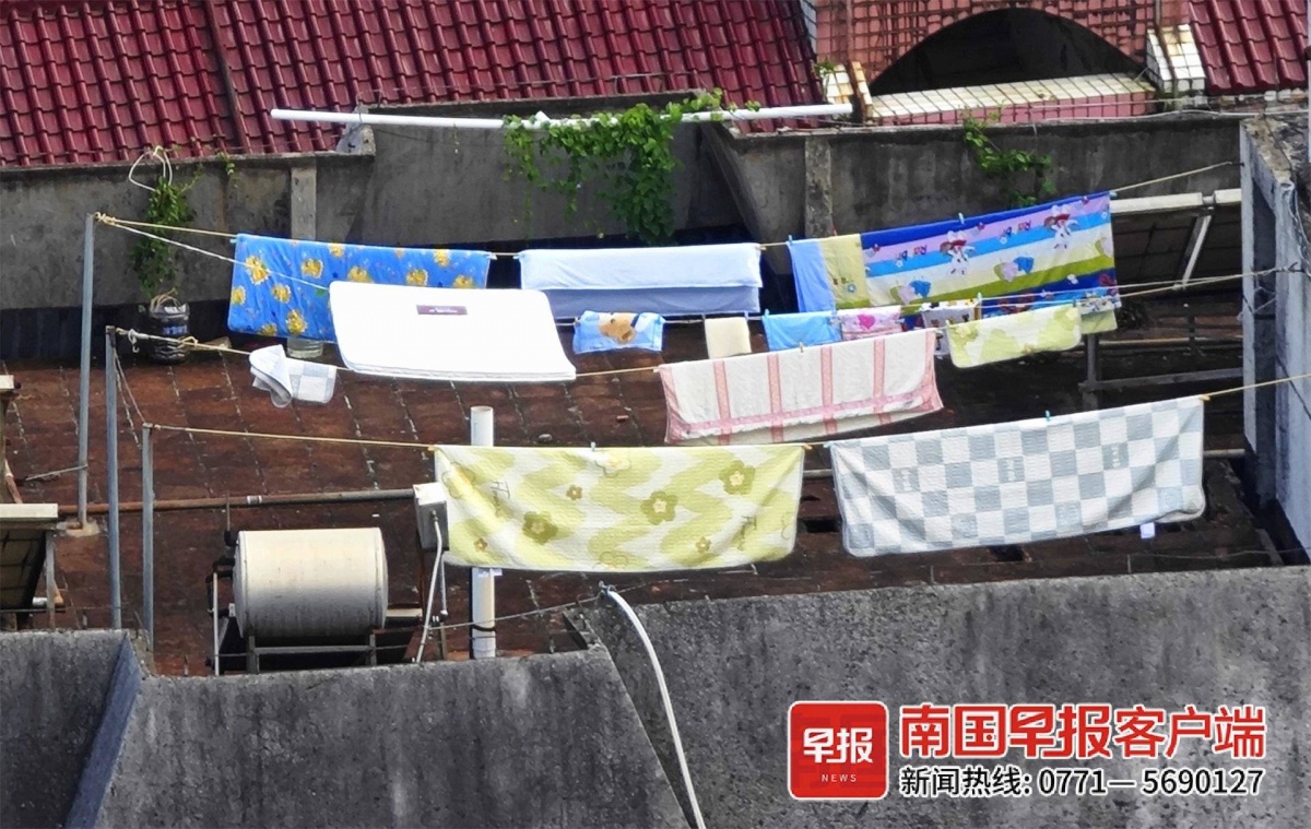 ▲8月26日,南宁天气晴朗,不少居民都将家中的被子拿出来晾晒。