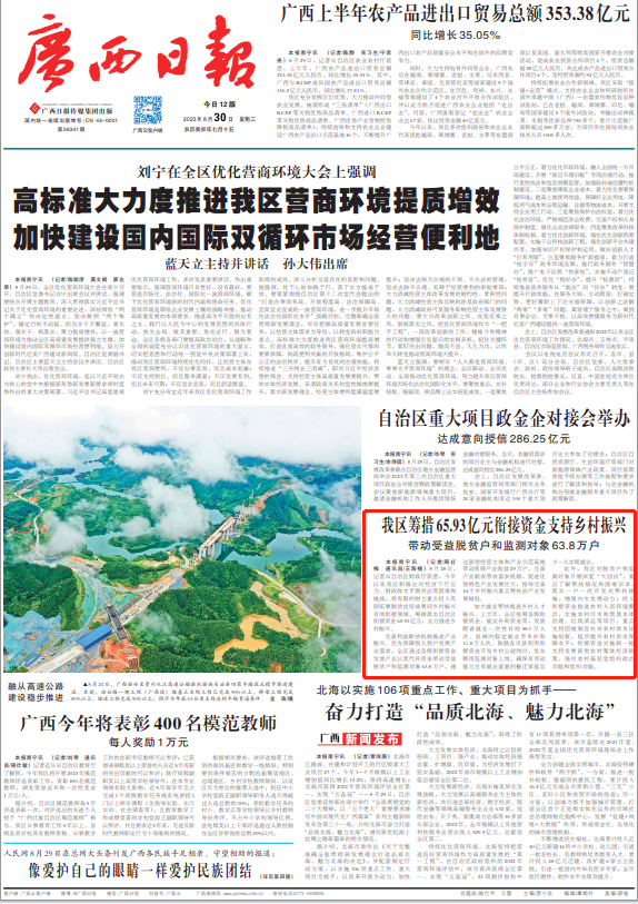 广西筹措65.93亿元衔接资金支持乡村振兴 带动受益脱贫户和监测对象63.8万户