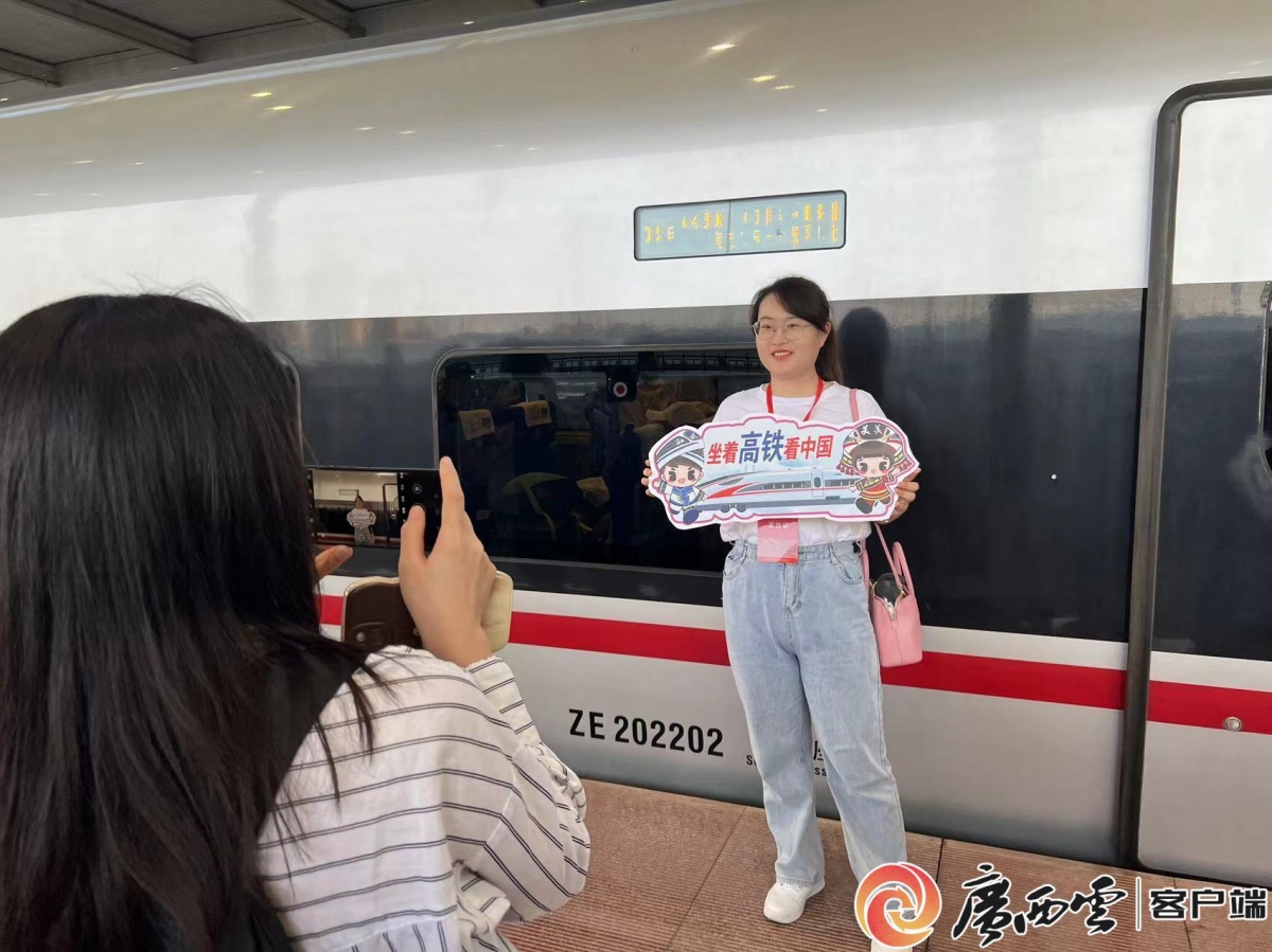 8月31日上午7:33,G4308次列车驶出南宁东站,标志着贵南高铁全线通车运营。杨思悦 摄
