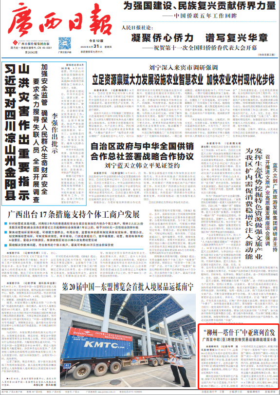 广西新闻网-广西日报柳州讯 (记者 岑琴 通讯员 封荣权)8月30日下午,运载261台商品汽车的中亚班列从柳州市雒容汽车物流基地出发,将从新疆霍尔果斯口岸出境,直通乌兹别克斯坦首都塔什干。这标志着广西至中欧(亚)跨境货物贸易运输大通道增添一条新路线,将助力广西企业拓展海外市场。