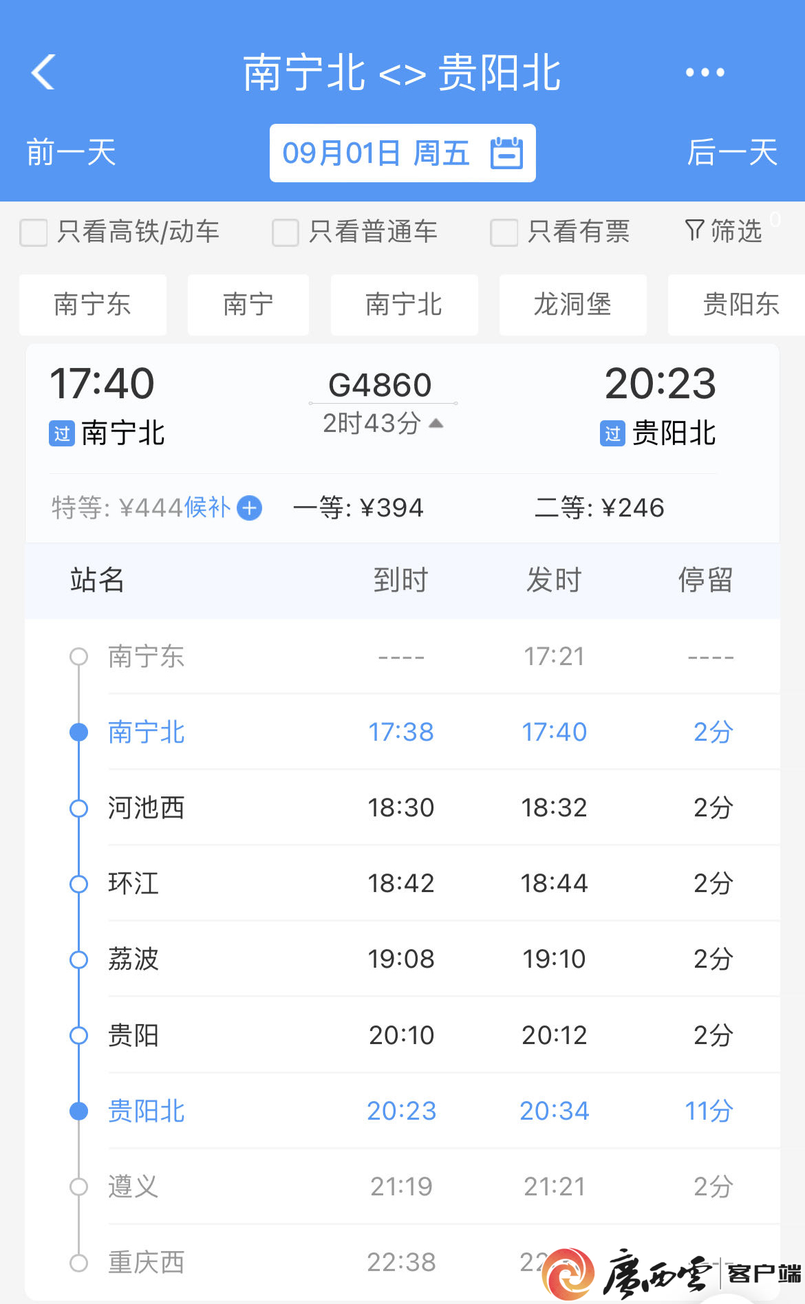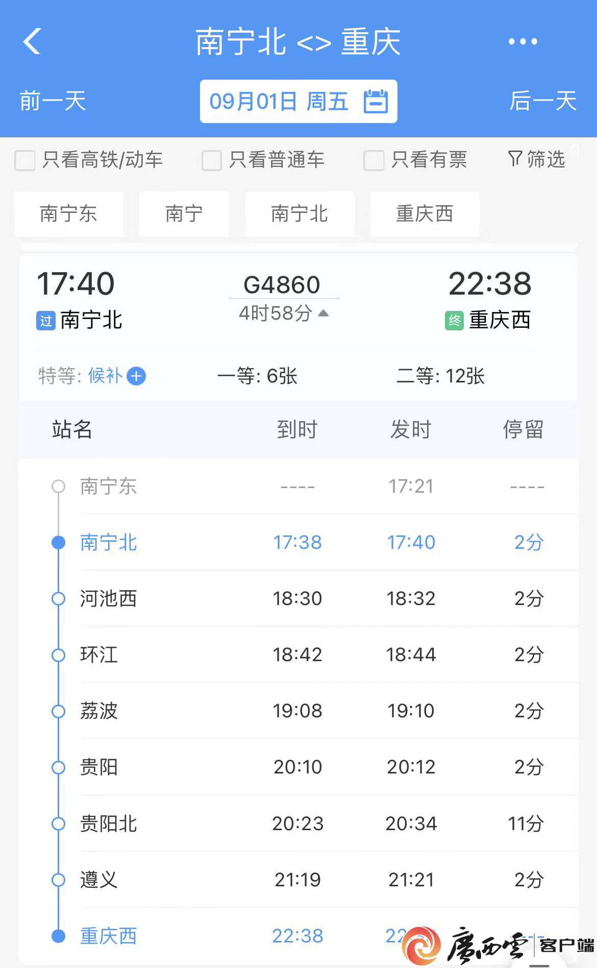 贵南高铁全线开通运营初期,国铁南宁局将按照日常线、周末线、高峰线安排列车开行,单日最高开行担当动车组列车26列,其中途经南宁北站的有12列。