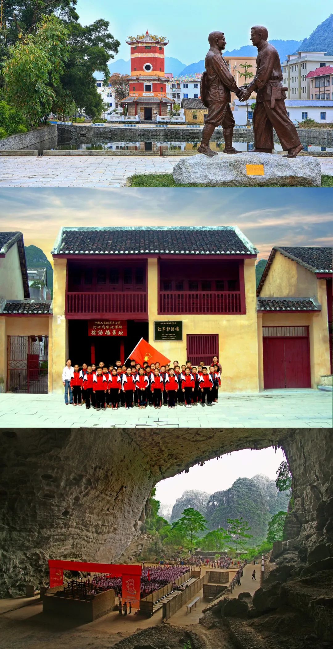 前往全国110所爱国主义教育基地之一的韦拔群纪念馆参观,了解伟人革命事迹,到革命列士陵园献花缅怀。然后到东兰壮乡将军纪念园,了解韦国清上将革命事迹,接着参观红七军前委旧址—魁星楼、韦拔群故居、广西农民运动讲习所旧址—列宁岩。
